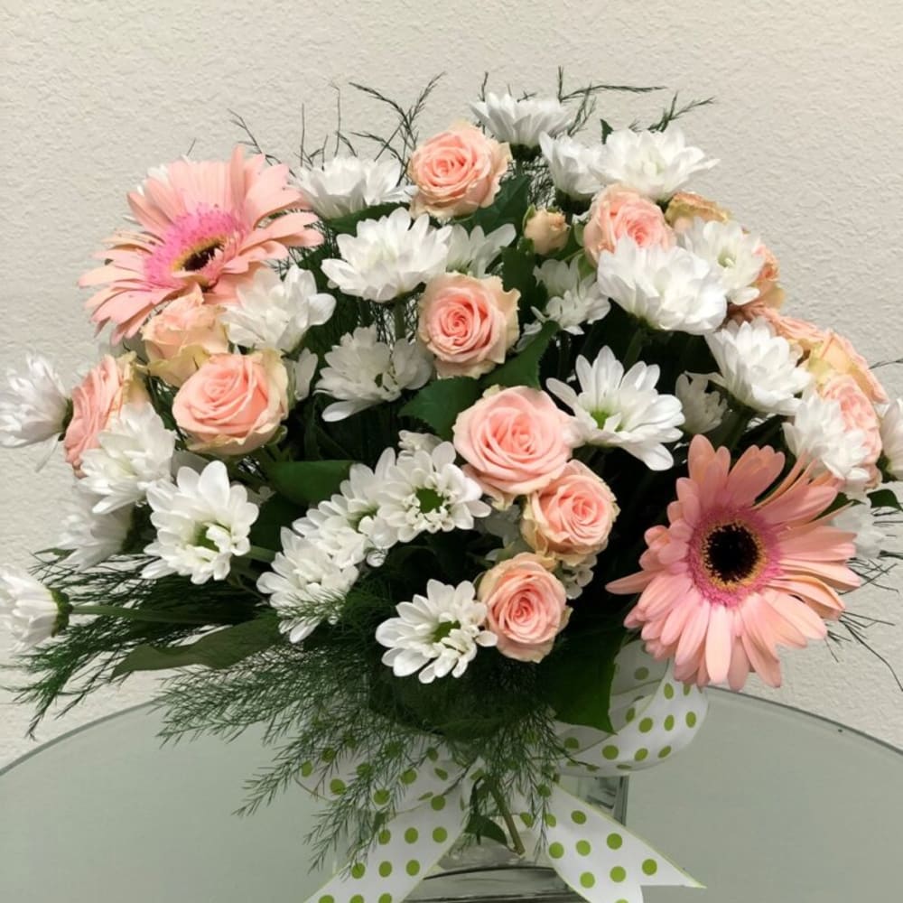 Price: $94.99WHITE PHALAENOPSIS ORCHIDS AND PINK ANTHURIUM